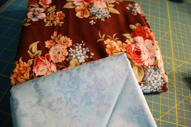 And from the sale rack, this large print floral on brown background, with ice blue for the inside.