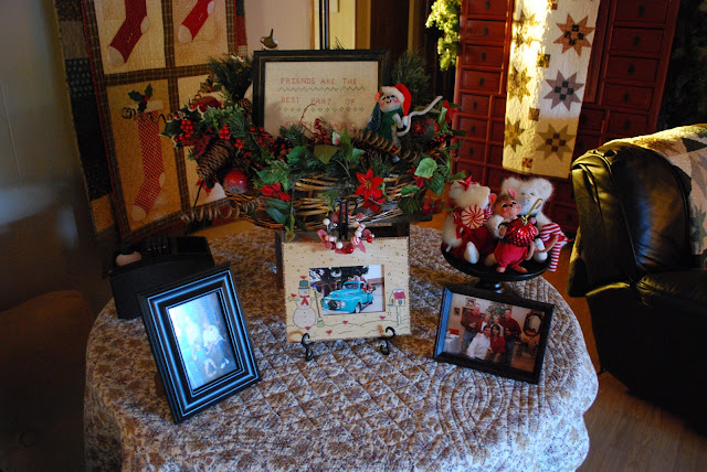 I'm enjoying your festive decorations because nothing has been done here. I have been in the kitchen and just finishing up with that. The tree will be decorated tomorrow--I hope!!